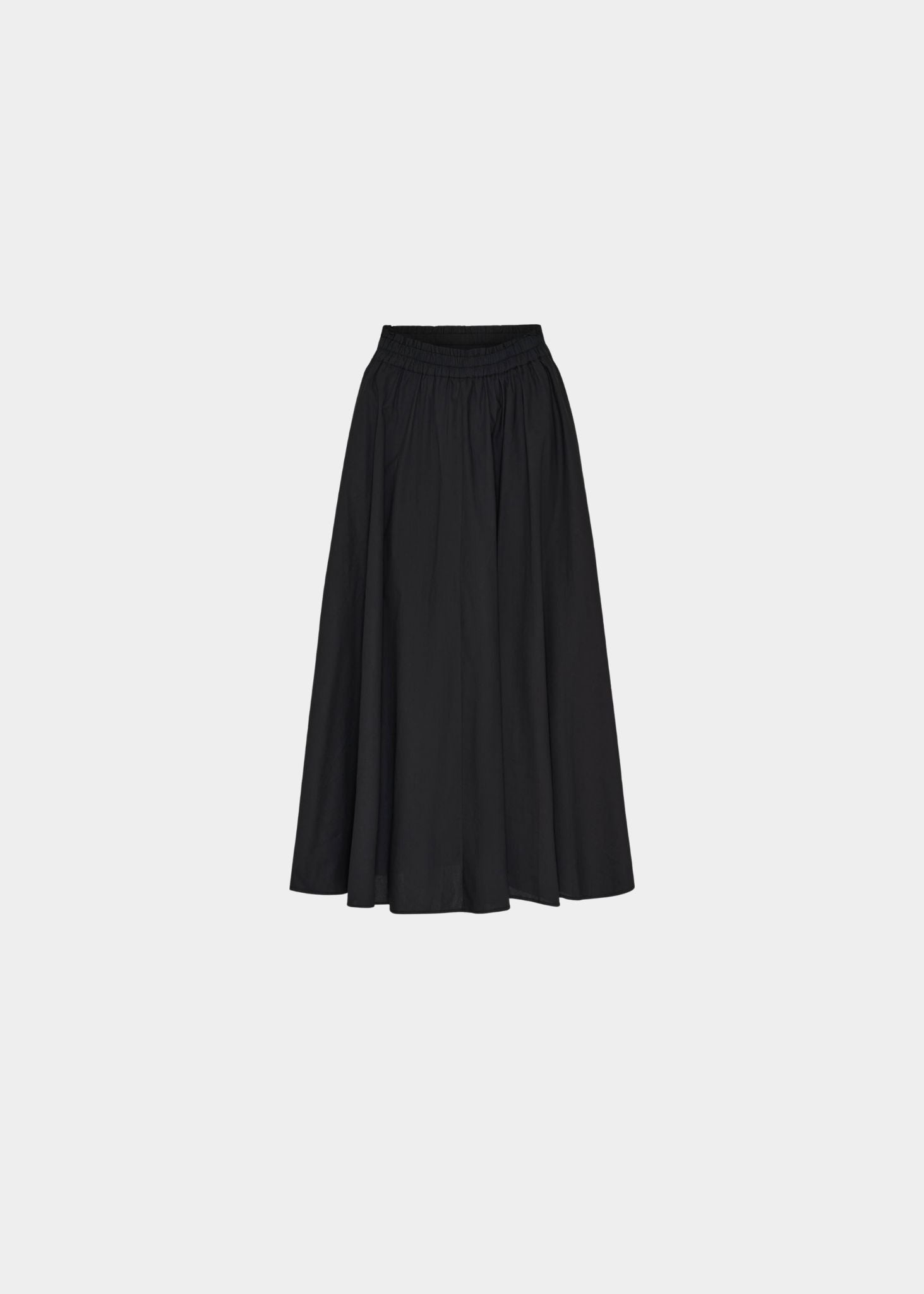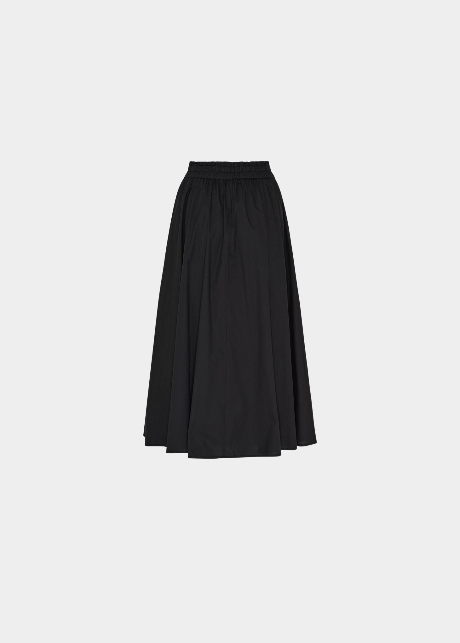 Irissa-nederdelen er en raffineret version af ubesværet påklædning. Den er lavet af sprød, kraftig bomuld og falder smukt i en voluminøs A-form – perfekt til hverdagsbrug med en afslappet, men elegant fornemmelse. Den elastiske linning og sidelommerne tilføjer både komfort og funktionalitet.