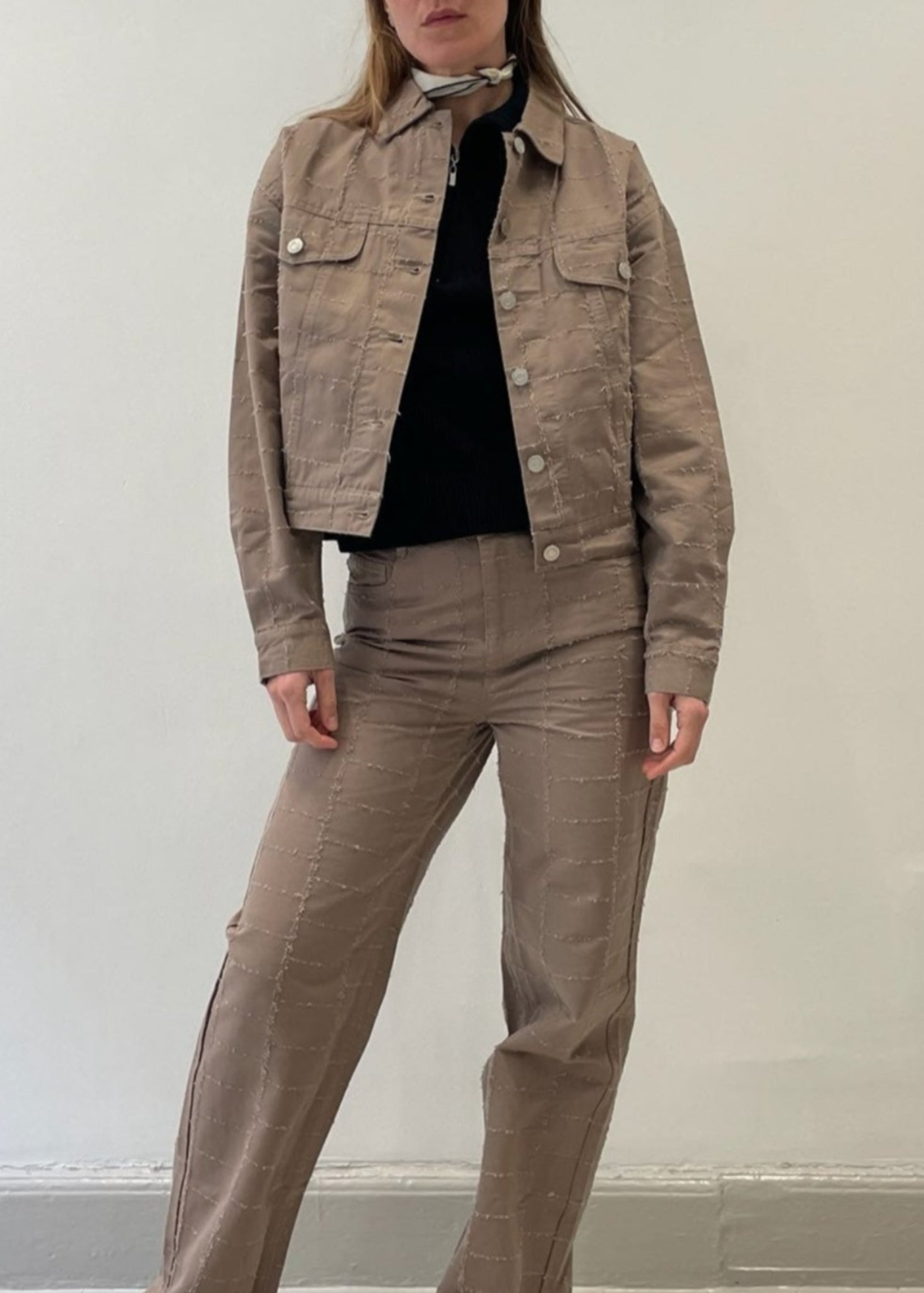 The Salia Jacket is an elevated essential with it’s boxy fit, ripped fabric pattern and denim inspired details. It brings an effortless edge to your wardrobe for everyday wear and can be paired with the matching Salia pants for a cool and complete look.